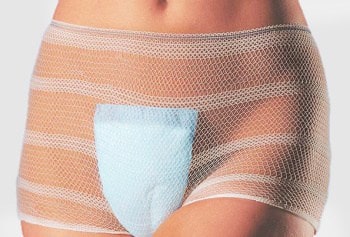 The elastic net slip for post-surgery recovery and urinary incontinence issues is available in 4 sizes and color coding at the waistband indicating different sizes.